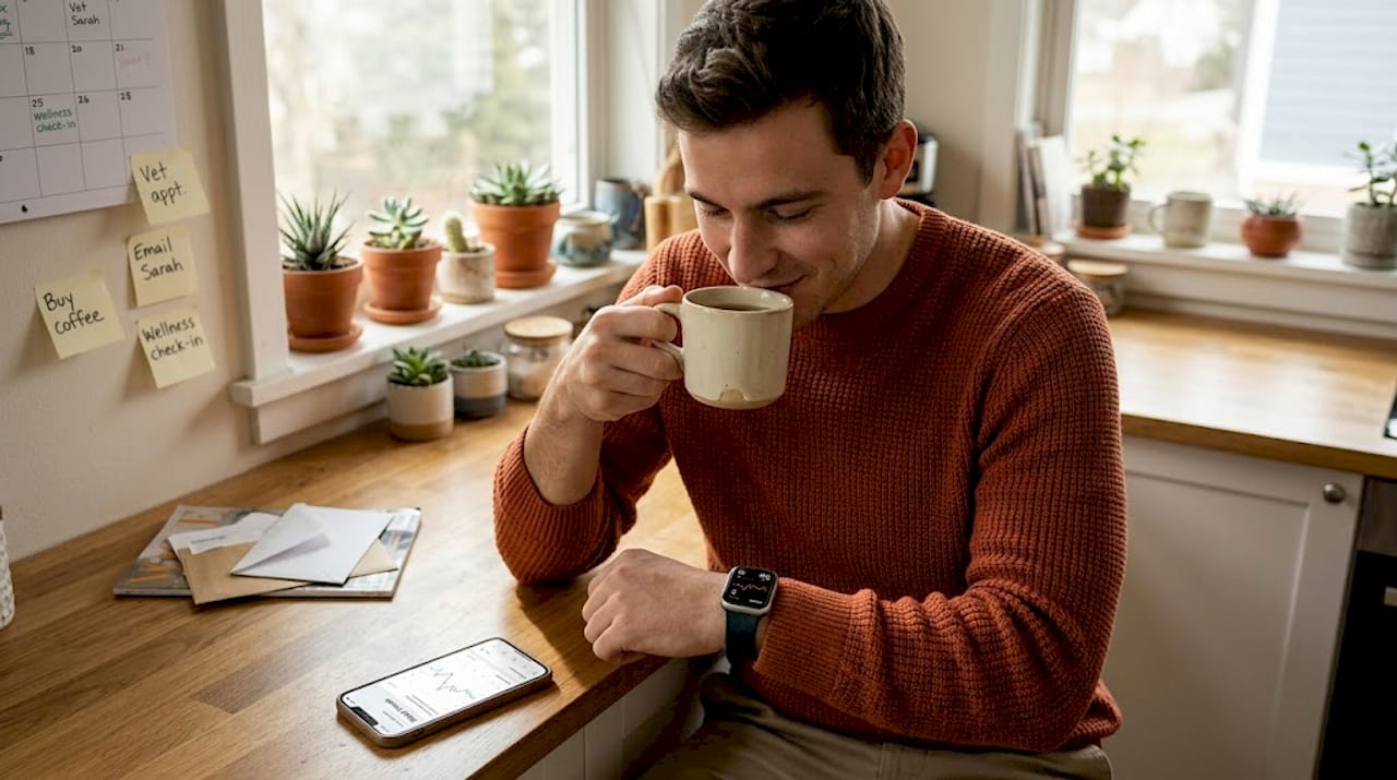 Passive sensing means your device collects data continuously in the background. Your smartwatch tracks heart rate variability (HRV), which is the variation in time between heartbeats and a reliable indicator of your nervous system's state. Your phone logs how much you're moving, how often you're picking it up, and even speech patterns during calls. Sleep trackers measure how long you sleep, how often you wake, and how much time you spend in restorative deep sleep. None of this requires you to fill out a form or answer a prompt.